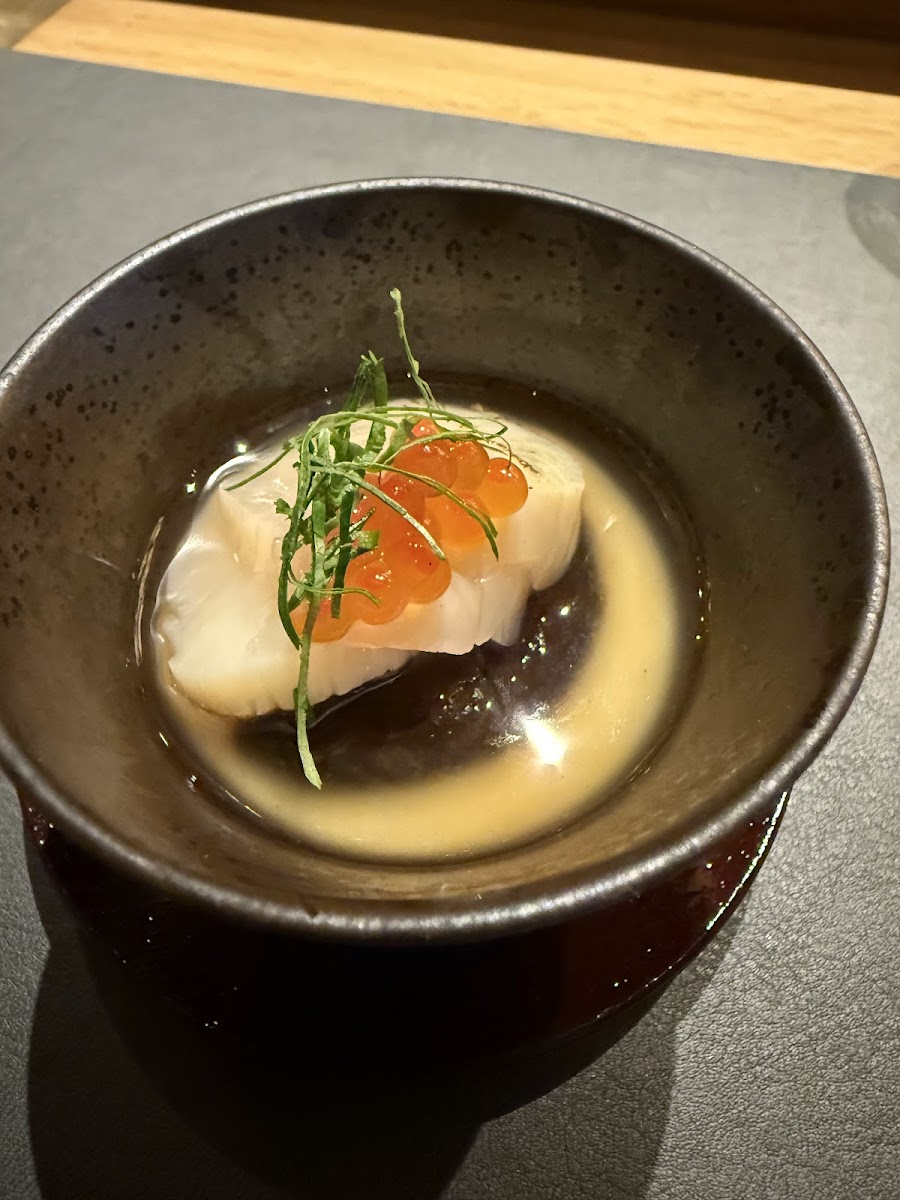 For those who prefer a warm, hearty dish, the Saikyoyaki is a great option. This grilled fish dish, seasoned to perfection, offers a rich umami flavor that is satisfying and comforting. To start your meal, you can enjoy Zensai, which includes Baby Abalone and Salted Koji Marinated Scallop with Dashi Jelly. The delicate preparation of these items brings out the natural flavors, providing a perfect introduction to the meal.